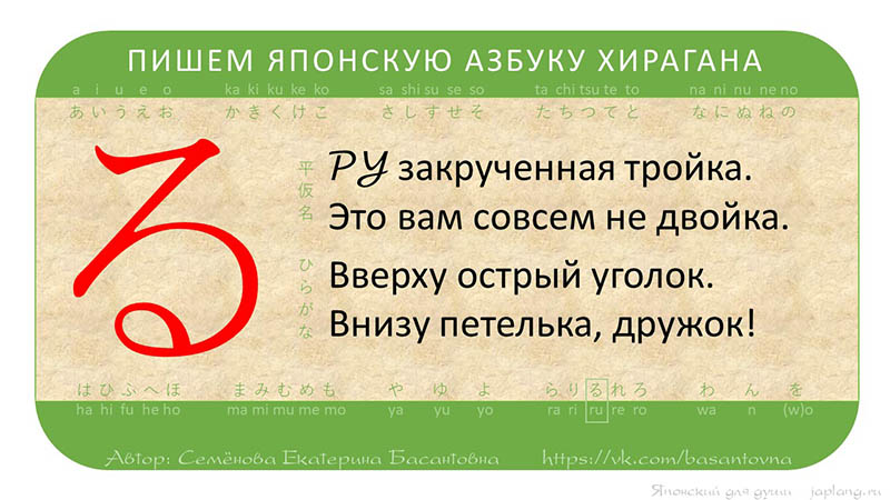 ХИРАГАНА в МИКРОСТИХАХ: РА, РИ, РУ, РЭ, РО