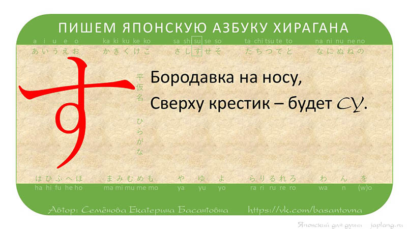 ХИРАГАНА в МИКРОСТИХАХ: СА, СИ, СУ, СЭ, СО